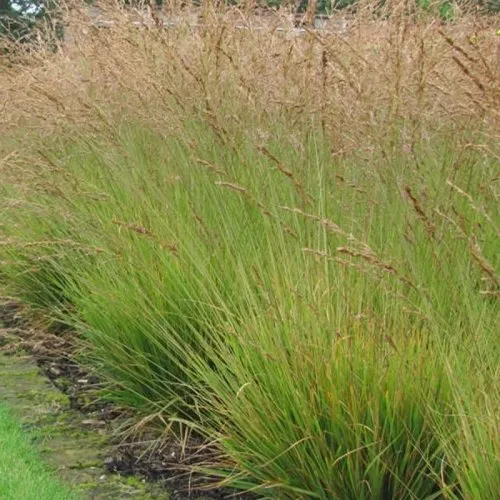 Куст формирует плотную, вертикально ориентированную кочку с изящными зелёными листьями, которые к осени окрашиваются в теплые золотисто-янтарные тона. Высота растения варьируется от 40 до 60 см, а во время цветения метёлки могут подниматься до 130 см, создавая почти парящую над листвой вуаль. Соцветия — лёгкие, воздушные, с пурпурно-коричневым отливом. Цветение длится с августа до середины осени, без запаха, но с высокой декоративной отдачей.