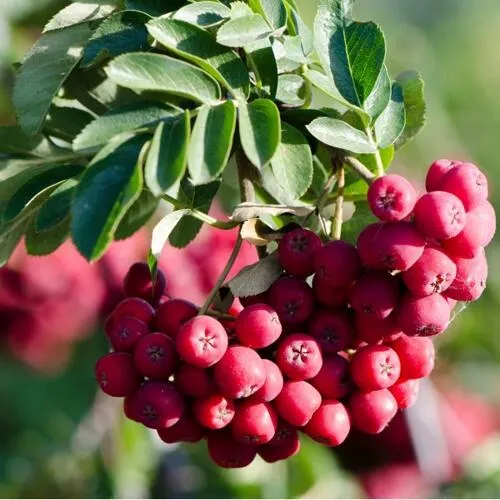 Рябина Титан — это листопадное невысокое деревце с компактной округлой кроной, достигающее высоты до 3-3,5 метров. Оно имеет характерные прямые побеги и ветви, а также тускло-коричневую кору. Листья растения мелкие, с глянцевой темно-зеленой окраской летом, а осенью они окрашиваются в малиновый цвет, добавляя красок вашему саду. Бесспорно, этот сорт станет настоящим украшением ландшафта.